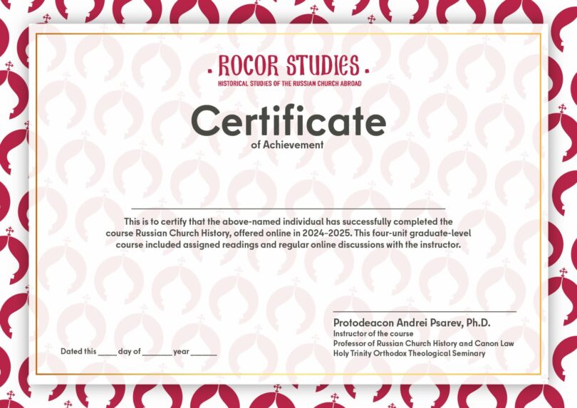 In the fall of 2024, I announced my Russian Church History course for the first time. Since then, one student has already completed all seven units, and two others are steadily progressing toward the finish. The course includes a certificate of completion, and I am now ready to welcome additional students.